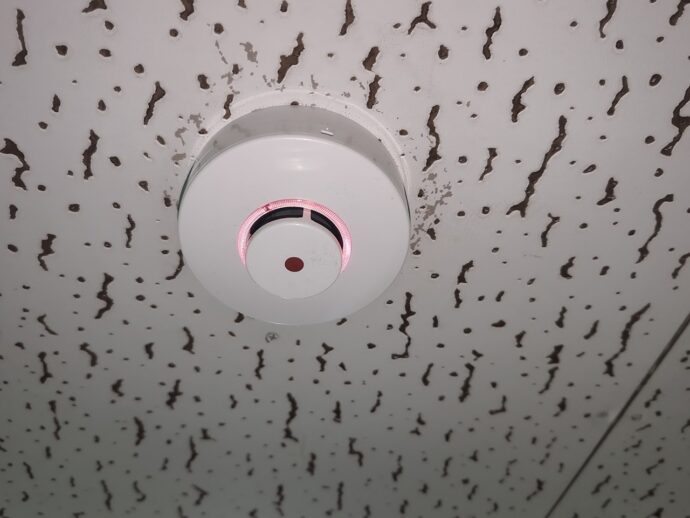 上の写真は連動用煙感知器が煙を感知し、発報している画像です。